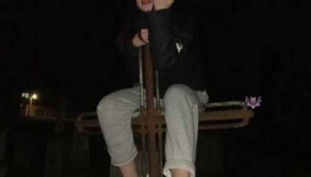В соцсетях активно распространяют фото, на котором девушка-подросток в серых спортивках и черной куртке взобралась на крест и уселась на него. Это произошло на Старом кладбище в Жидачеве Львовской области.
