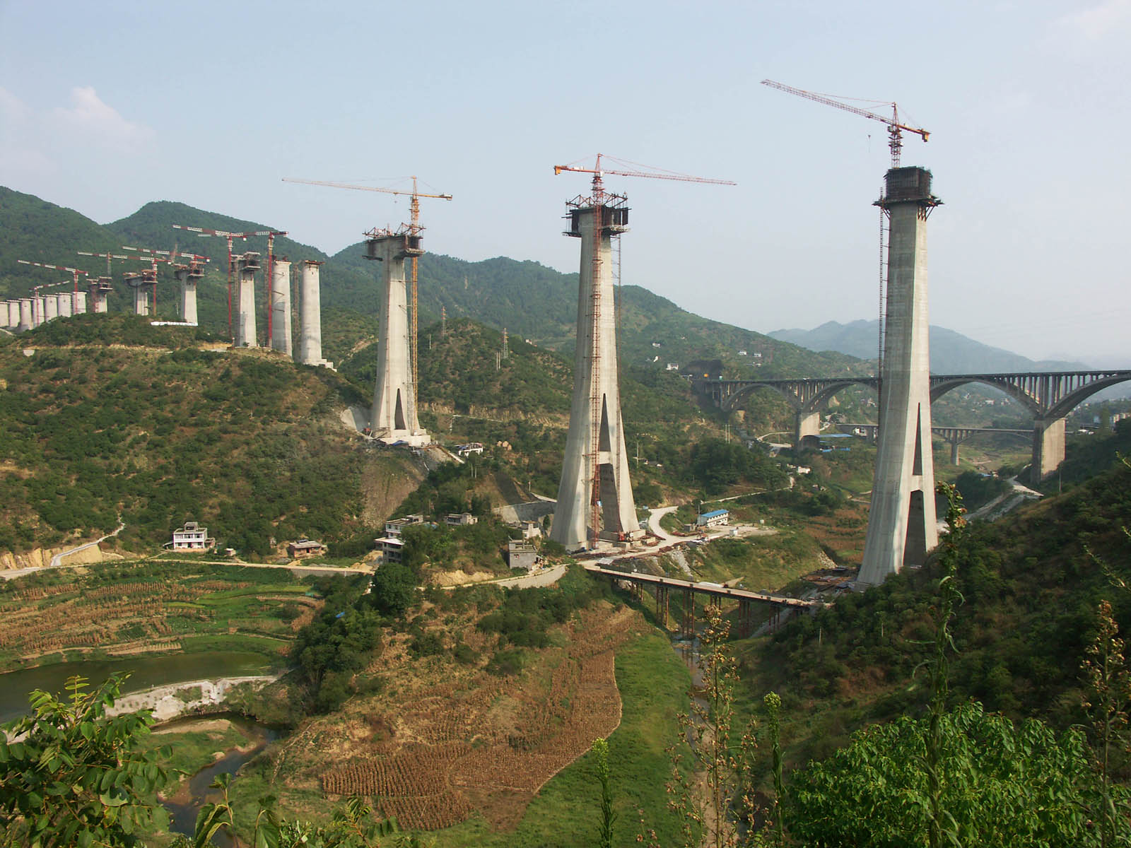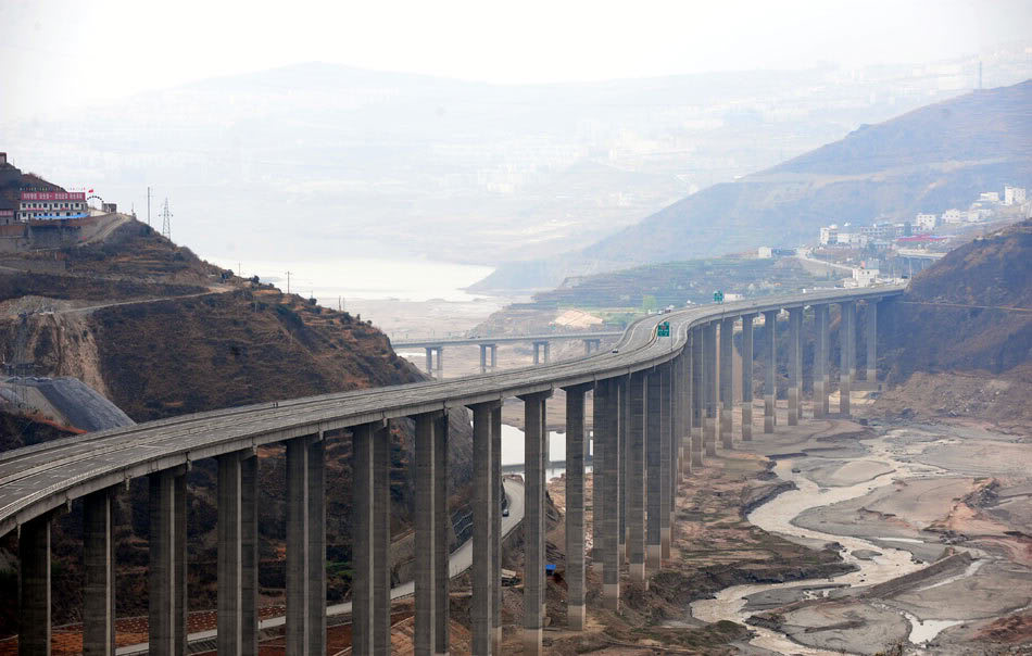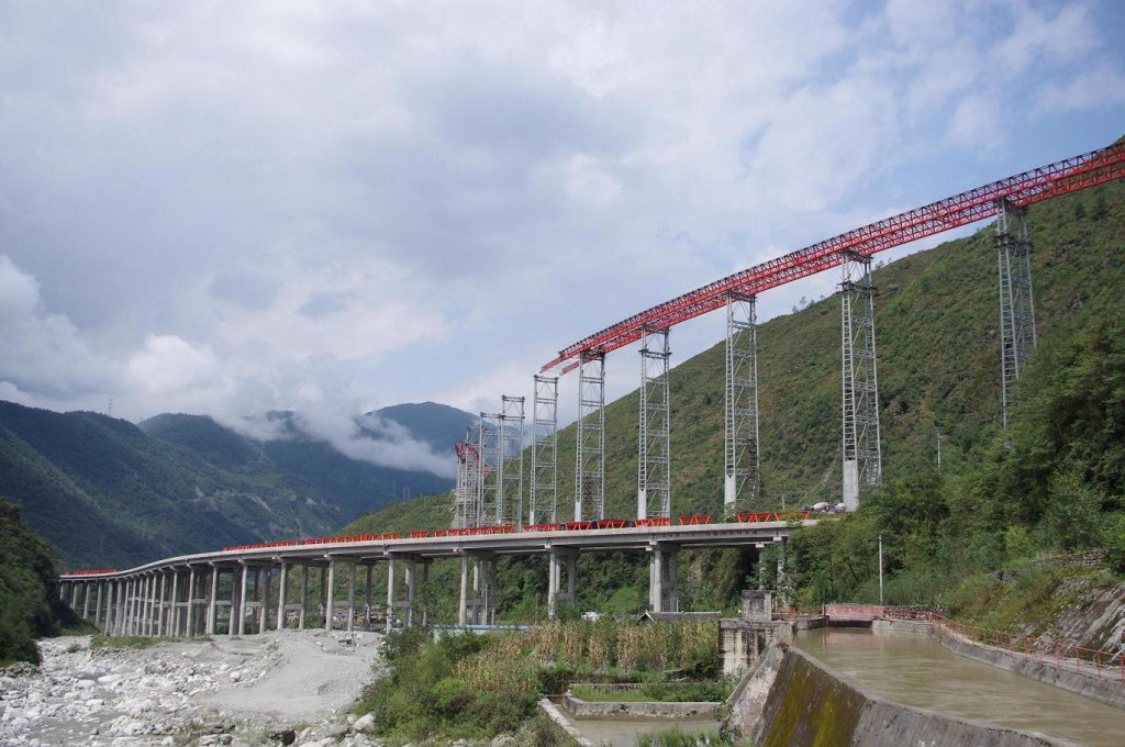Крупнейший железнодорожный виадук в мире — Caijiagou Railway bridge. Массивные опоры выполнены в форме китайского иероглифа — «люди»: