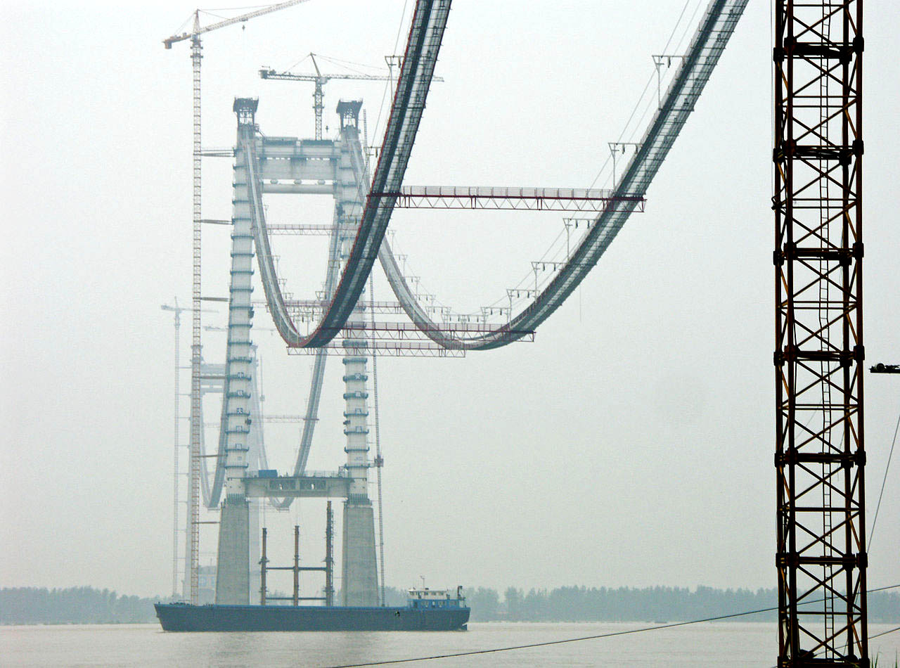 Уже сегодня в Китае 300 тысяч мостов (тысяча из них – длиной более километра). Из 100 крупнейших вантовых мостов в мире 55 находятся в Китае. Причем интересно что из 40 крупнейших вантовых мостов мира 20 переброшены через реку Янцзы.