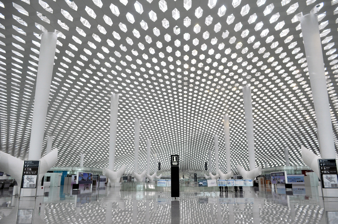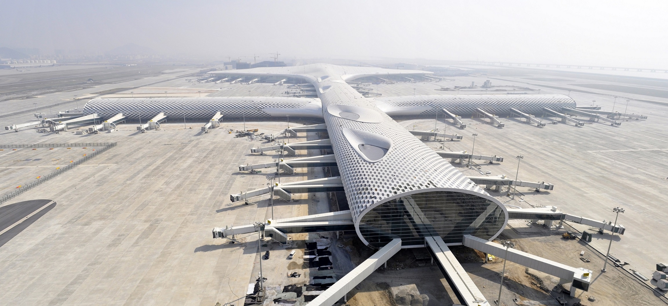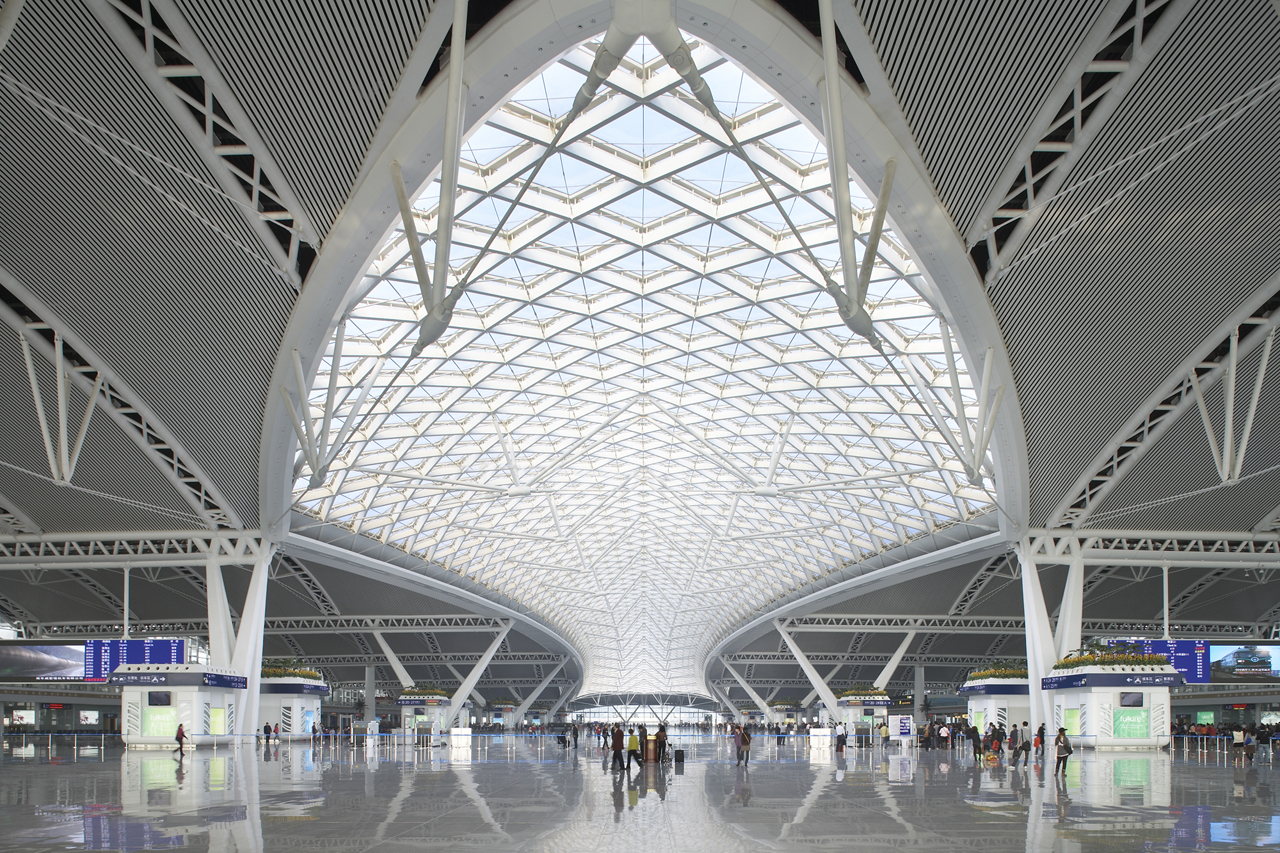 Пожалуй самым футуристичным аэропортом в мире можно назвать аэропорт Шэньчжэнь Баоань. Новый терминал, разработанный итальянской архитектурным бюро Фуксас, поражает своим дизайном как внутри, так и снаружи.