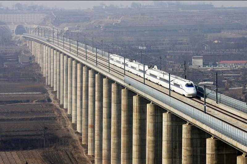 Огромная сеть высокоскоростных железных дорог (ВСМ), постепенно опутывает всю Поднебесную, гигантские эстакады и виадуки достигают в длину 100-150 км.