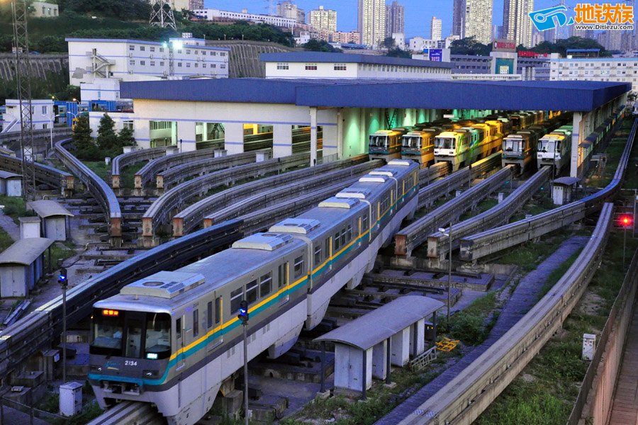 Первые попытки внедрения в китайских городах монорельсового транспорта. Монорельсовое депо в городе Чунцинь: