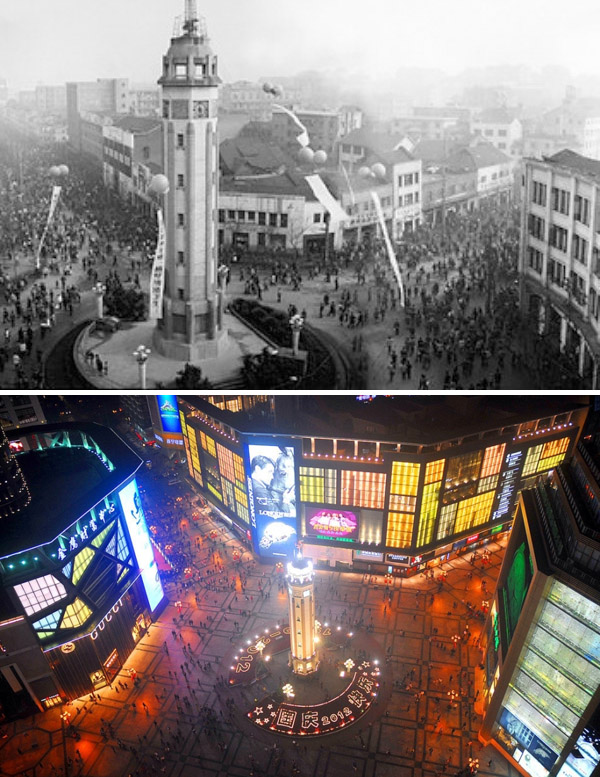 Единственным сооружением центра города сохранившимся до настоящего времени является — Монумент Народного Освобождения. А сама центральная площадь города стала напоминать Тайм-Сквер в Нью Йорке.