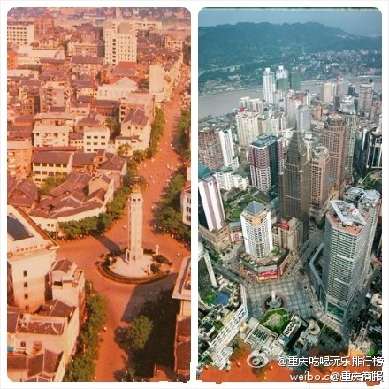 А это центр город Чунцинь в 1981 году и в наше время: