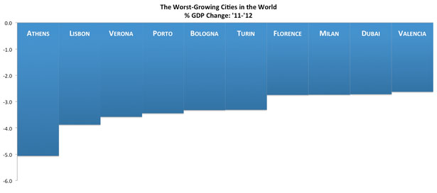 А самыми медленными темпами развивались города Европы: 42 из 50 худших мегаполисов мира были европейскими. Что любопытно в список худших вошел когда то один из мировых лидеров развития — Дубай.