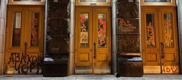 В ходе протеста активисты облили красной краской здание, зажгли файеры и обстреляли фейерверками крышу Офиса президента. Стены и двери ОП обрисовали надписями "Волю Стерненко" и "Аваков - черт".