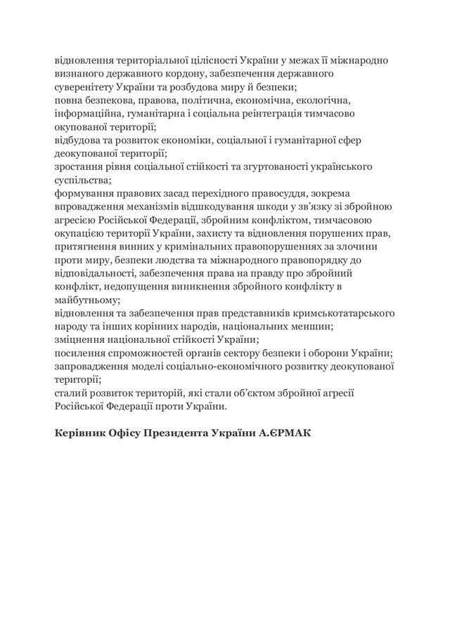 - Документ является четким сигналом для мира, что действия Украины по восстановлению территориальной целостности являются последовательными.