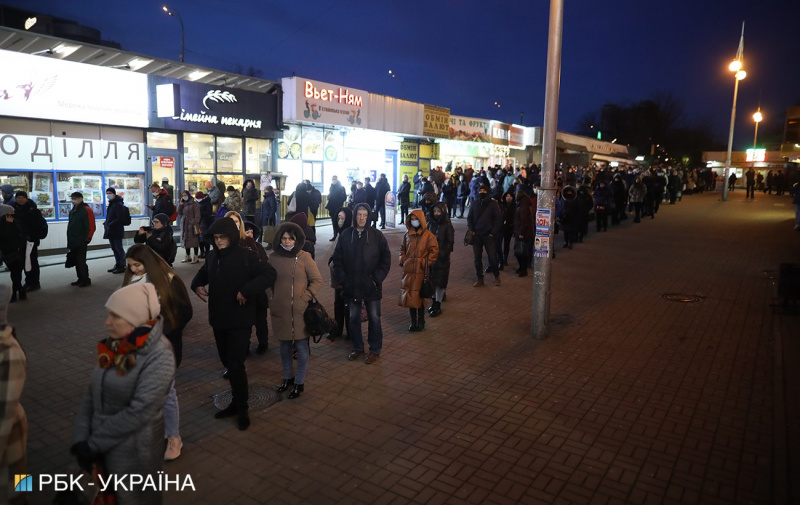 В частности, на Левобережной в очереди стоят около сотни людей. При этом на Черниговской - людей поменьше.