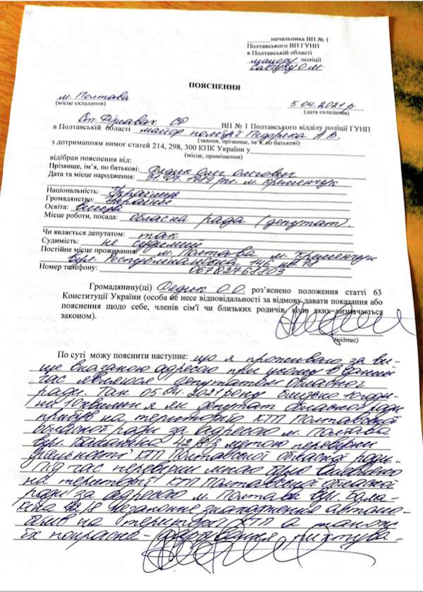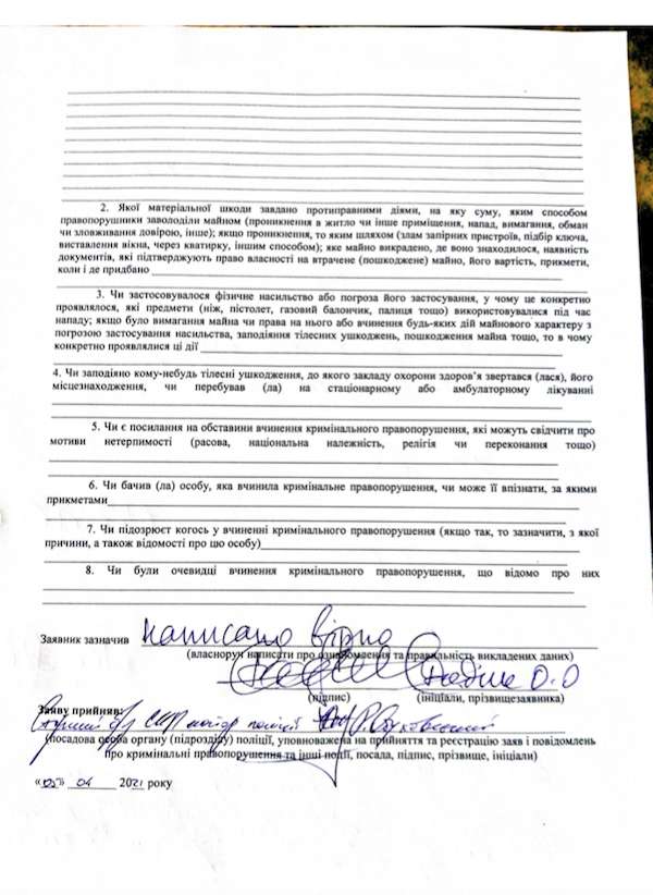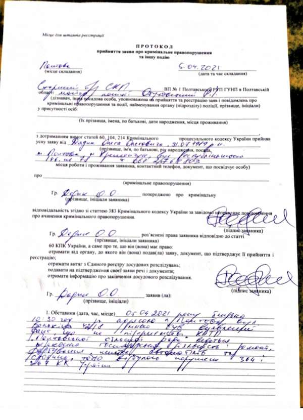 После чего вызвали полицию и составили заявление о возможном совершении криминального правонарушения (преступления):