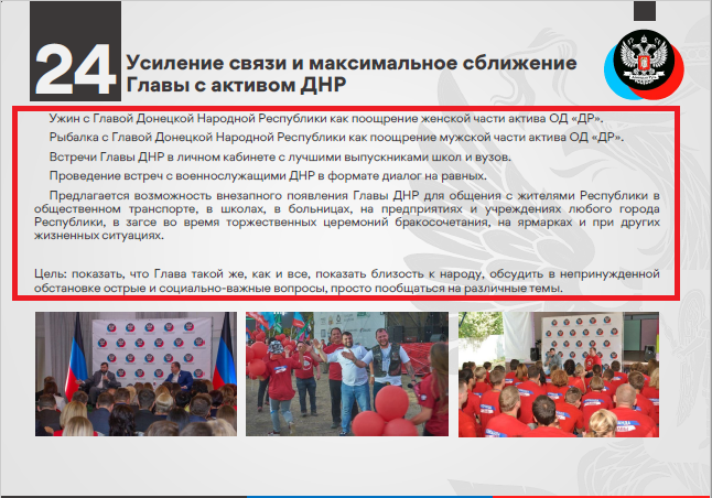 Для тех, кто не курсе - основным направлением так называемого "апсчетвеннава движения данецкая рышпублика" является формирование и поддержание имиджа главмакаки дыныры + создание и раскручивание площадок для удерживания на нужном уровне пропагандистского шлака в информационном поле + создание и поддержание образов врагов дыныры + выявление социально-экономических рисков, которые угрожают стабильности и комфорту руководителей дыныры(гауляйтеров и т д) и представителей местных администраций. Одним словом, чистая пропаганда, ничего личного