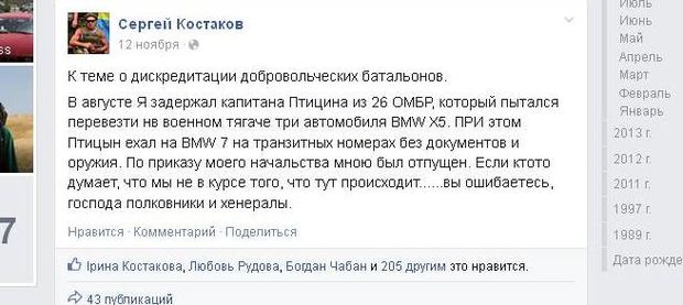 Сергей Костаков и говорил, и писал о преступлениях в зоне АТО, обвинял полковников и генералов, которые усидели на своих должностях со времен Януковича. Не удивительно, что правдоруба не выносило воровитое начальство.