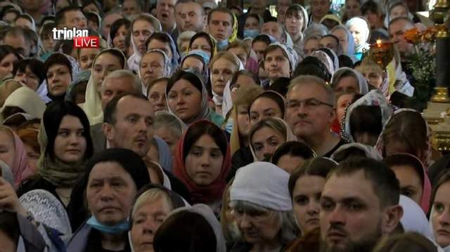 На обнародованных кадрах с литургии видно, как плотно друг к другу стоят люди в помещении. Почти все – без защитных масок, в том числе и священнослужители. В соборе много пожилых людей и детей.