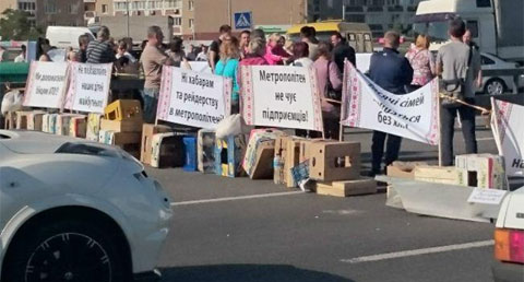“У районі станції метро “Харківська” близько 50 чоловік заблокували дорожній рух по проспекту Бажана в обох напрямках. У такий спосіб приватні підприємці виступають проти демонтажу торгових павільйонів, розміщених у підземному переході метро”, – йдеться в повідомленні.