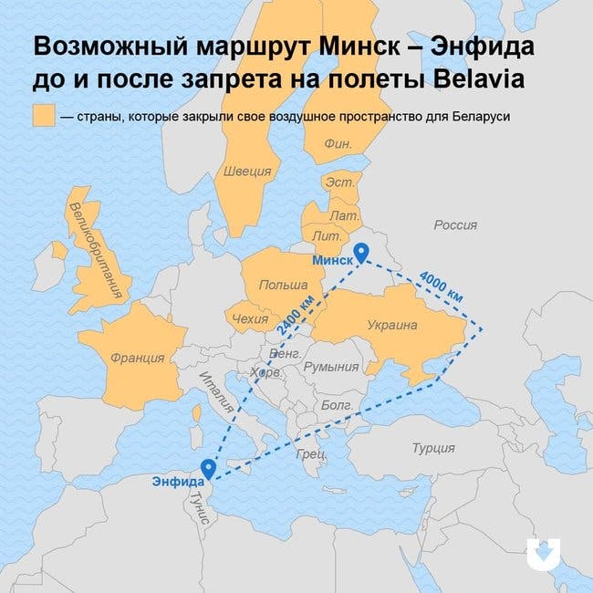 На сегодняшний день по меньшей мере 10 стран уже закрыли свое воздушное пространство для белорусских авиакомпаний.