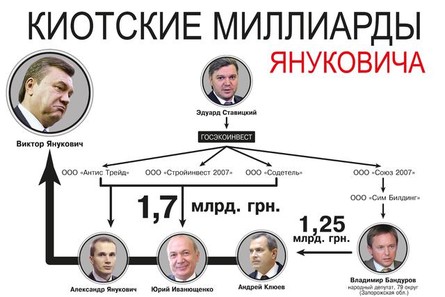Україна майже відразу «вляпалася» в корупційний скандал з «кіотськими» коштами: 4 мільярди 700 мільйонів гривень (470 млн євро), безвісти розчинилися в Державному бюджеті. Але, звичайно ж, не без допомоги «сім’ї» Януковича.