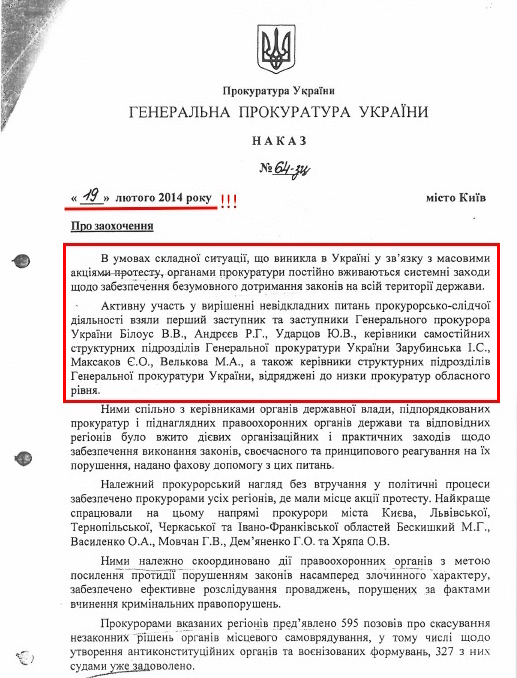 Хорошо, если ГПУ плевать на закон, то как она объяснит тот факт, что столичной прокуратурой руководит человек, поощрённый Пшонкой (внимание!) 19 февраля 2014 года "за активное участие в решении неотложных вопросов прокурорской деятельности в условиях сложной ситуации, которая возникла в Украине в связи с массовыми акциями протеста"?!