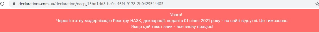 И, кстати, это его декларация еще за 2019 год. Ибо тех, кто хочет ознакомиться с благосостоянием своих «слуг» и прочих чиновников за прошлый, 2020 год, на сайте электронных деклараций ждет вот это: