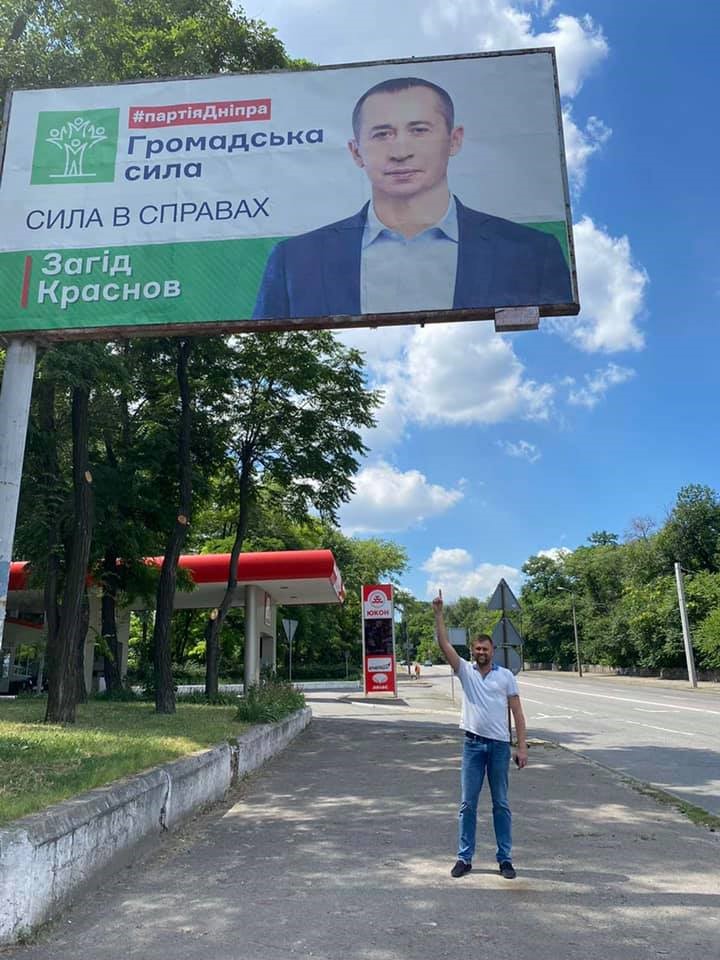 Кстати, "отличный" пример глупого самолюбования ему подает Краснов-старший. Уже десяток с лишним лет неистово размещающий портреты себя, любимого, на сотнях рекламных бордов. Которые незаконно установил в Днепре в сладкий период "директорства" в горсовете вместе с сепаратистом Царевым.