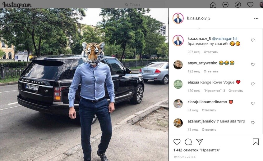 Социальные сети Краснова-младшего - апофеоз пафоса, хвастовства и самолюбования. Днепряне регулярно поднимают на смех спесивого сынка-мажора, который непомерно кичится роскошными машинами, люксовыми шмотками и позирует в компании быковатых друзей, эдаких гламурных бандитов. "Джуниор" от большого ума регулярно "палится" и создает скандалы: к примеру, умудрился выложить в Инстаграмм фото с места аварии, которую же сам вероятно и устроил. Вот только полиция, которая явно не бесплатно "сочувствует" клану Красновых, упорно не замечает безобразий.