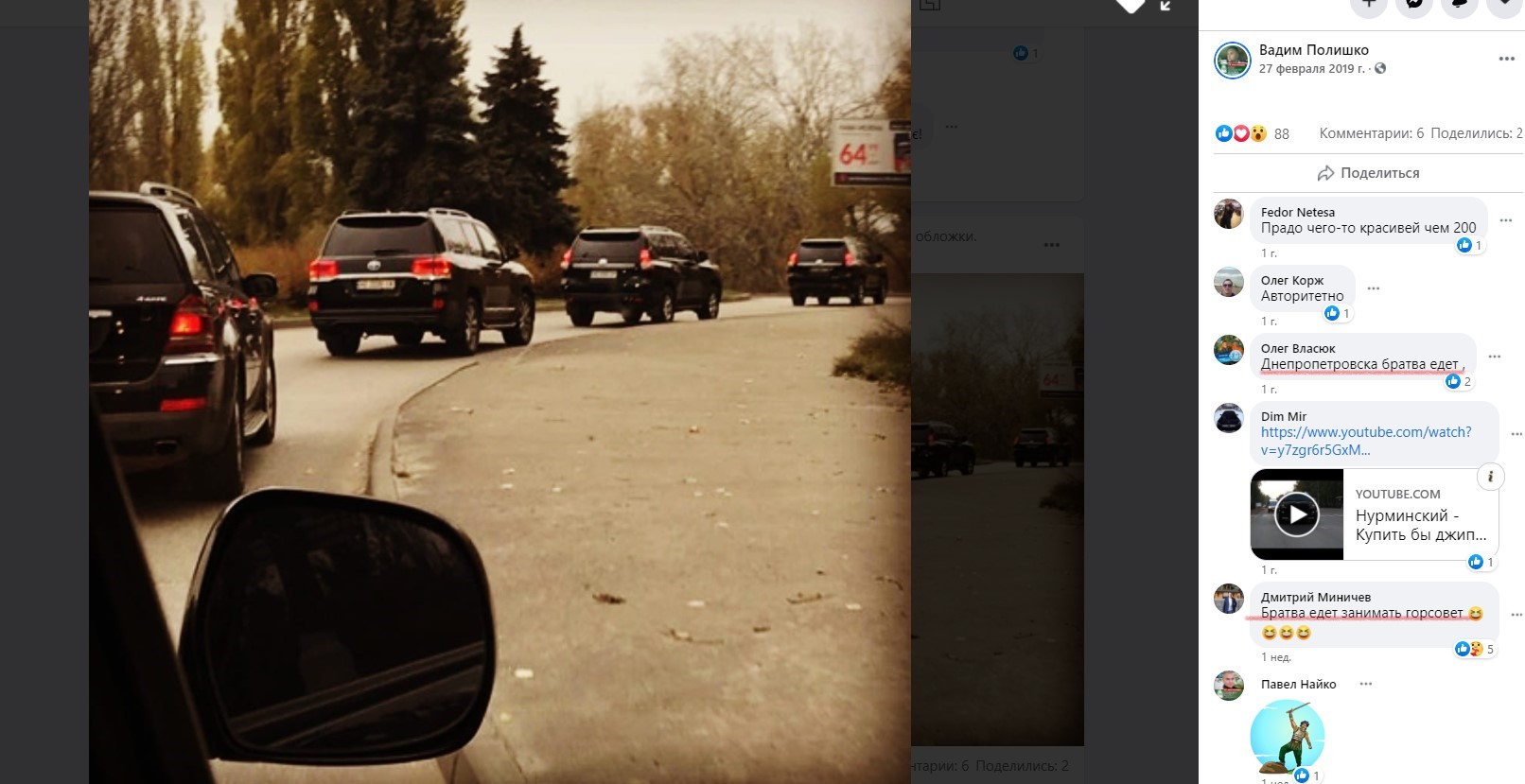Не отстают в дурной браваде от Загида и Ко другие проходимцы, которые примазались к бандитскому движению Краснова. Так, некий Вадим Полишко, который безуспешно пытался пробраться во власть вместе с Загидом, пафосно позировал для фото, а также хвастался черным внедорожником, на котором едва не устроили дикую аварию. Так, под Запорожьем водители черных «крузаков» (один из них засветил на своем фото поклонник Загида Краснова) пытались обогнать по встречной полосе (!) колонну автобусов, перевозивших детей с летнего отдыха. Кроме того, по сообщениям СМИ, обнаглевшие мажоры жестко подрезали полицейскую машину, оскорбляли правоохранителей и пытались скрыться… Нарушителей задержали только в Запорожье: полицейские установили, что один из водителей был пьян.