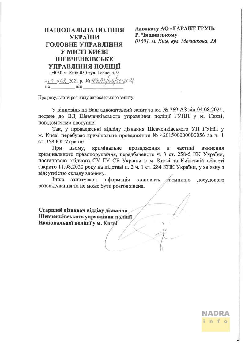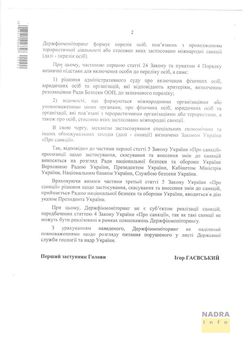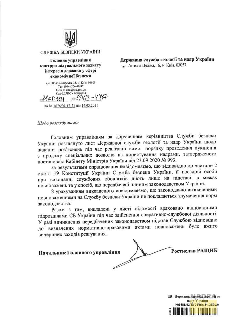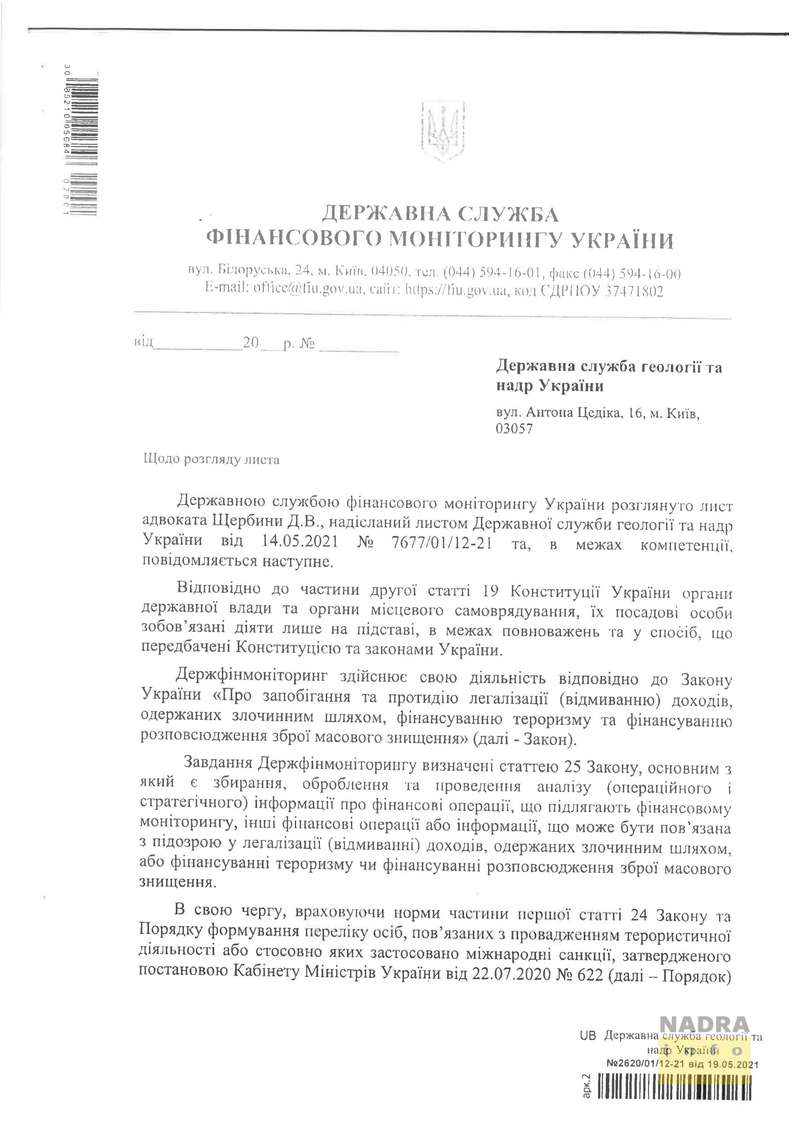 Очільник Держгеонадр Роман Опімах в коментарі NADRA.info заявив, що згадану інформацію адвоката Щербини Д.В. було підтверджено листом Служби безпеки України: