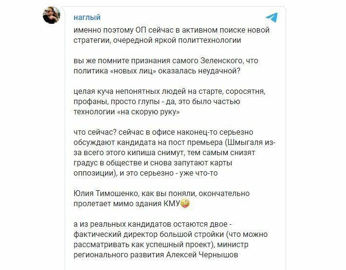 Неудивительно, что Чернышов пошел «другим путем» - он строит из себя в СМИ «эффективного менеджера» и просто хочет с помощью пиара перескочить на другую должность, где все можно начать с «чистого листа». Волны «джинсы» периодически распространяются в СМИ и соцсетях. В заказных материалах «объясняется», чем Чернышов лучше первого вице-премьера Алексея Любченко в качестве кандидата в премьеры. Ярким примером подобной «джинсы» может служить недавний пост в телеграм-канале телеведущего Макса Назарова, который уже даже не знает, как хвалить Чернышова – «толкового бизнесмена во власти». Назаров даже назвал его «директором Большой стройки» . Кстати, расценки за такой пост стартуют от $1000.