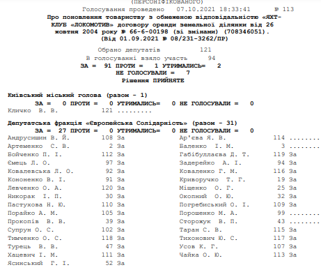 Согласно данным Киевсовета, за решение проголосовал 91 депутат, против – 1.