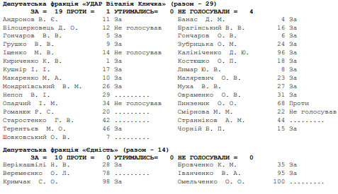 Гриценко также выложил на свою страницу в Фейсбук скрины поименного голосования за это решение.