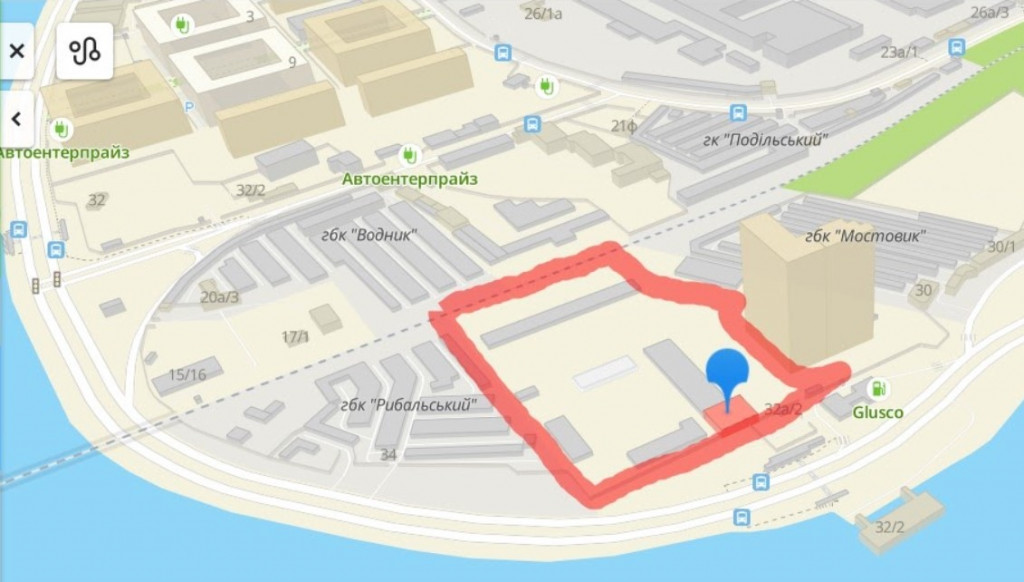 По данным из открытых источников, на просп. Бандеры Степана, 32 расположено двухэтажное здание, в котором находятся коммерческие компании (служба эвакуации автомобилей и заказа легкового транспорта, интернет-магазины), а также одноэтажные технические сооружения.