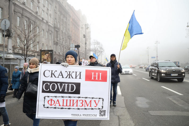 В Киеве антивакцинаторы вышли на акцию протеста, идут маршем по Крещатику