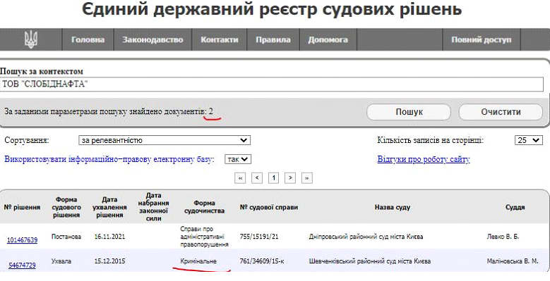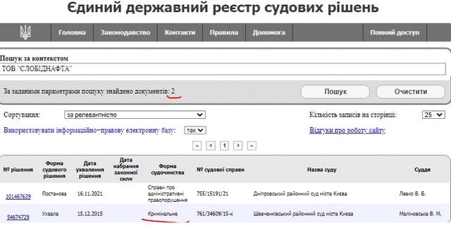 Но также отметим, что данная нефтедобывающая компания проходит по 55 документам в едином судебном реестре Украины, среди которых есть и криминальные.
