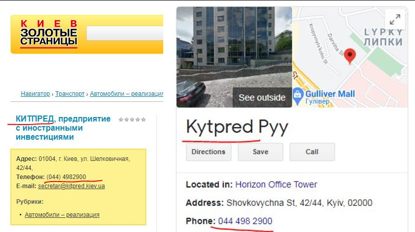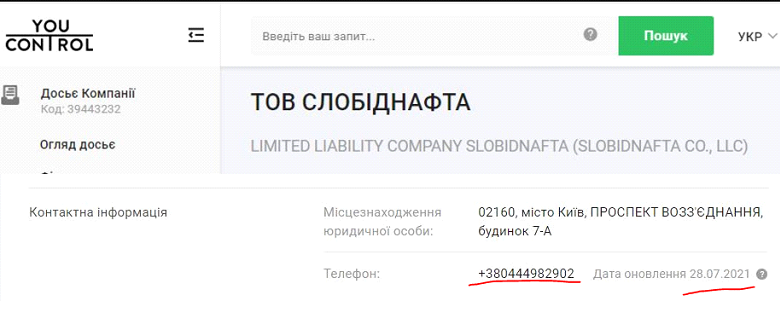 Телефон в реестрах у «Слобіднафта» - 38044 498 2902, а у «Китпред» - 38044 498 2900