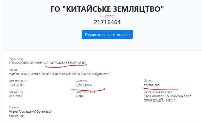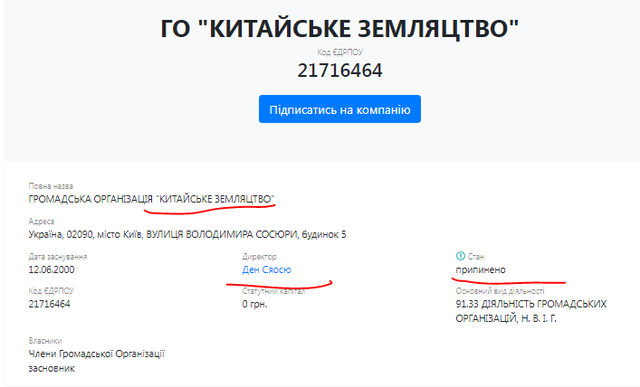 Статусный капитал – почти 2,7 миллиона гривен. Единственный основатель и бенефициар – Ден Саосю.