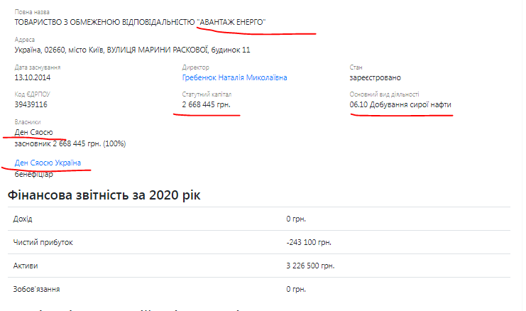 Еще один момент. По данным единого госреестра, Наталья Гребенюк, директор «Авантажа» является соучредителем общественной организации «Украинско-Китайский Центр». Там соучредитель также Дэн Сяосю. Он же непосредственный начальник Руслана Марченко, директора компании «Слобіднафта» которая была единственным конкурентом «Авантаж Енерго» на тех скандальных торгах.