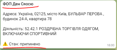Владеет одним ФОПом, деятельность которого также прекращена.