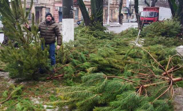 Продавцы елок в Одессе снова бросили свой товар прямо на улице