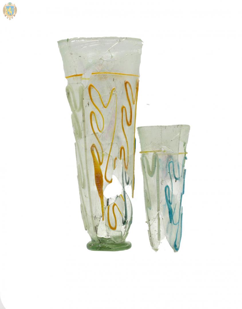"В погребении, кроме человеческих остатков, археологи обнаружили фрагменты двух стеклянных кубков, аналогов которым в Украине нет. А также: обломки рогового трехслойного гребня, бронзовую застежку (фибулу), части деревянного ящика, обитого бронзовыми пластинками с декоративными гвоздями и половинку жетона из белого пастового стекла. Такие жетоны использовали для римских настольных игр", — сообщила директор департамента архитектуры и развития градостроительства Львовской ОГА Елена Василько.