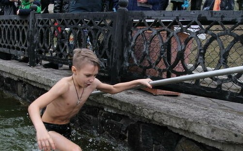 Так называемые "защитники" устроили 2-х часовое "богослужение за уничтожение киевской хунты и присоединение к России", а позднее поочередно окунались в прорубь. Данный ритуал также стал обязательным для "курсантов" и учащихся так называемых "кадетских классов". Все остальные дети могли "крестится в проруби" по собственному желанию. Однако таких, "почему-то", практически не нашлось. Оно и не удивительно, ведь так не долго можно и "православие головного мозга" подхватить.