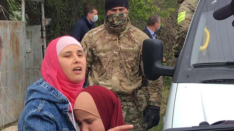Жена и дочка убитого Аюба Рахимова12 мая спецназ ФСБ взял штурмом дом, где проживал Аюб Рахимов, который якобы находился в международном розыске. При этом силовики по каким-то неведомым причинам отказались от традиционных мер задержания – они просто ворвались в дом и застрелили человека, который якобы оказывал сопротивление. Никакого расследования убийства не последовало, а многие жители Крыма расценили это как сигнал о том, что отныне любого неудобного человека сотрудники ФСБ могут не просто арестовать под вымышленным предлогом, но и спокойно убить во время штурма, “в связи с сопротивлением”.