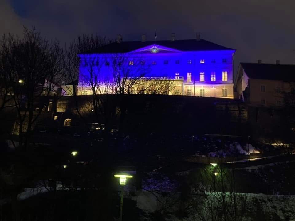 Глава Словакии Зузана Чапутова сообщила, что президентский дворец "перекрасили" в знак поддержки Украины в День единения, который 16 февраля отмечает наше государство.