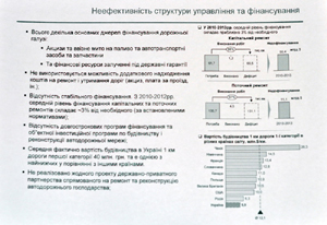 Найбільше авторів Стратегії турбує існуюча система управління дорожнього господарства і питання фінансування галузі. Як раніше зазначалося, в уряді уже давно виношують плани щодо реформування "Укравтодора".