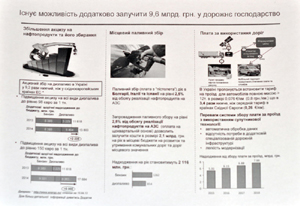 Далі з документа випливає, що "Укравтодор" планує методами тарифного регулювання всіляко стримувати зростання вантажообігу автотранспортом (підвищуючи штрафи за перевищення навантаження на вісь і вводячи плату за проїзд залежно від маси автомобіля).