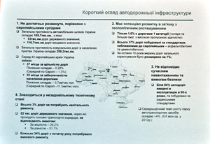 "Доведена пропускна здатність системи автомобільних доріг України складає 4,4 млрд тонн вантажів на рік", - йдеться у презентації.