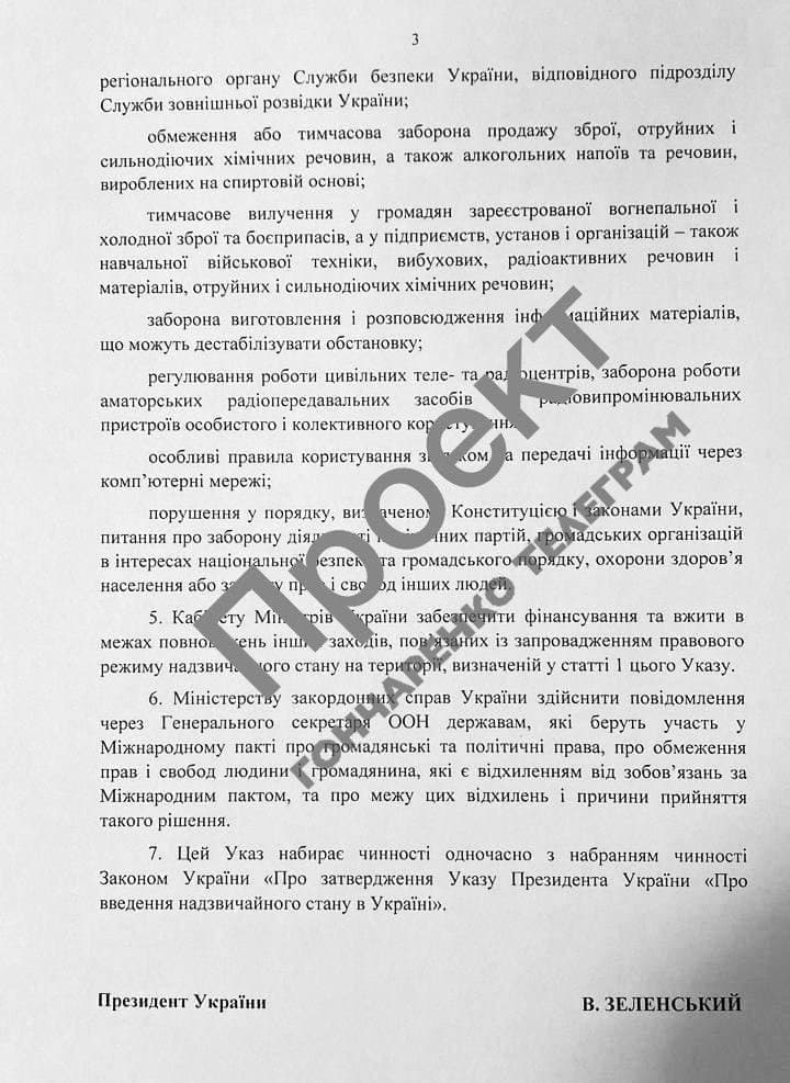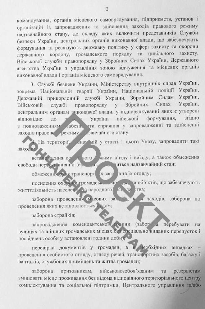 Народный депутат Алексей Гончаренко опубликовал проект Указа президента о введении чрезвычайного положения в Украине.