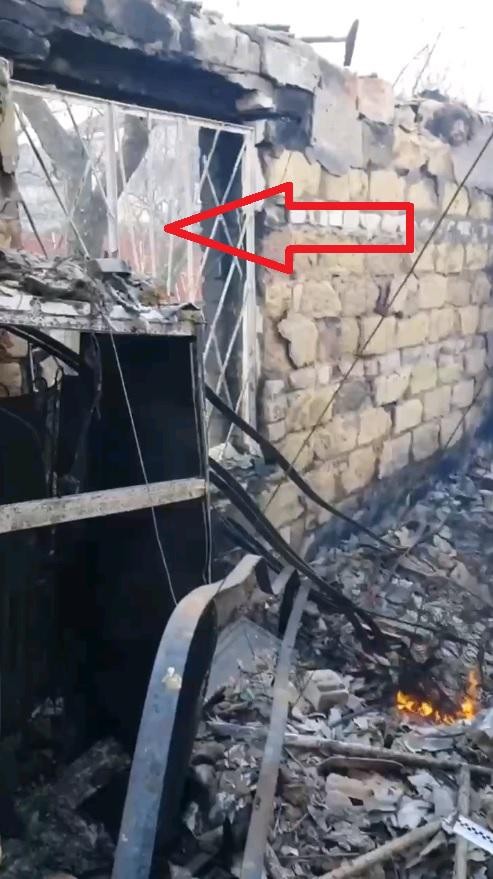 По заявлениям оккупантов в ходе обстрела один из снарядов попал в жилой дом, и погибли двое мирных жителей. В видео даже показали их обугленные “останки”… которые сложно вообще опознать как человеческие, но оккупанты заявили, что из-за пожара и высоких температур тела практически превратились в пепел. То есть, внутри дома должен был быть фактически крематорий, с учётом того, как выгорели “тела”.