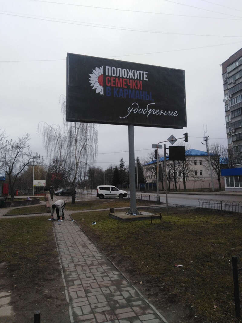 На території Броварської громади з’явились білборди з короткими посланнями до російських окупантів. “Покладіть насіння у кармани”, “Це наша земля”, тощо.