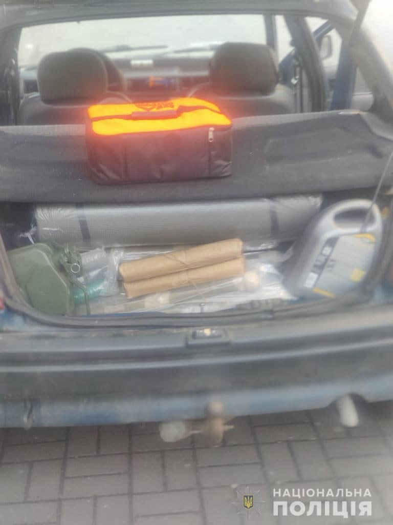 Во время их проверки стражи порядка обнаружили в авто целый арсенал оружия, а также канистры с бензином, карты Киева и поддельные пропуска.