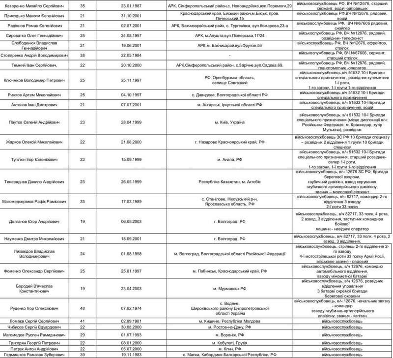 “Таких списков, как и списков погибших солдат оккупантов, будет еще очень много. И Вы знаете, кто в этом виноват – Путин!” – отметил он.