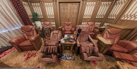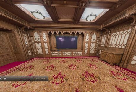 У кінозалі є дев’ять шкіряних крісел, з яких два масажні. Стіни оздоблені деревом. Для демонстрації фільмів є великий монітор, також є екран, який опускається для перегляду фільмів з проектору. У залі є 3D-окуляри.