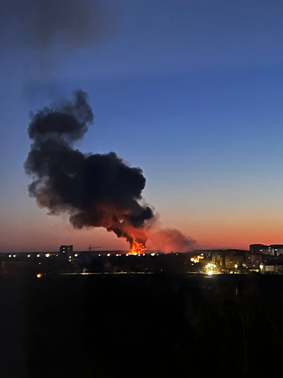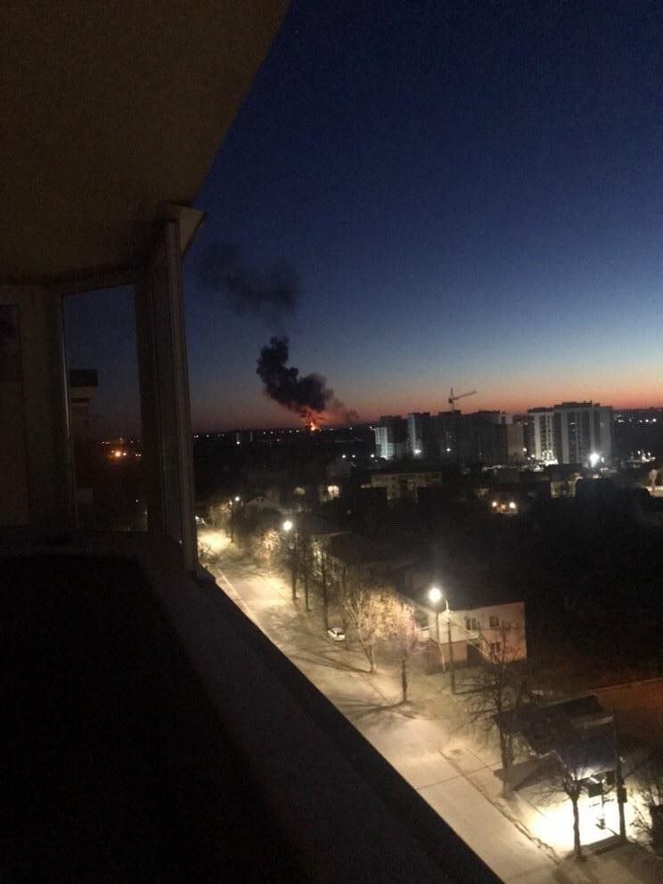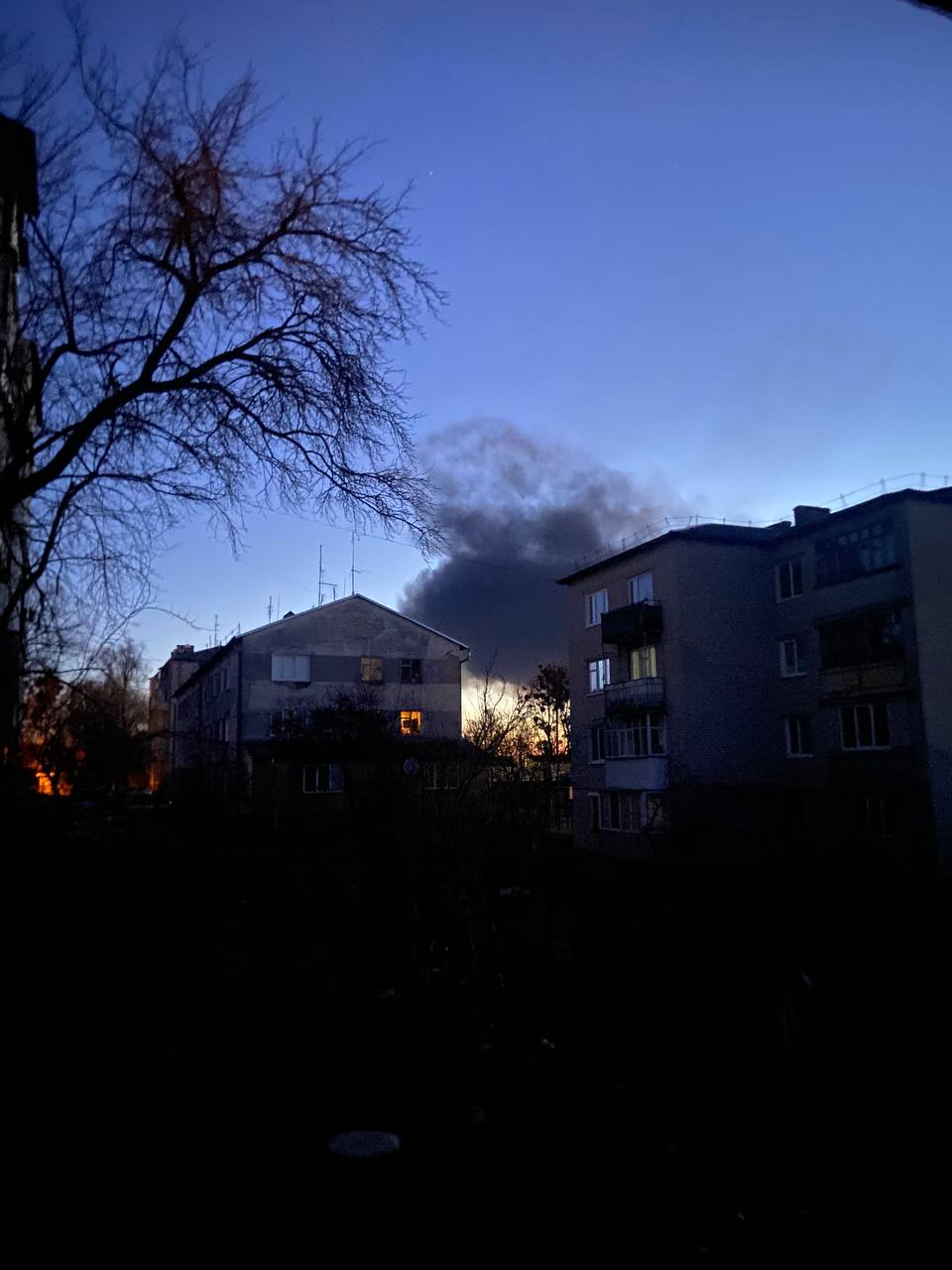 В Луцке ранним утром 11 марта раздались сильные взрывы. В результате возник пожар, дым поднялся высоко над городом.